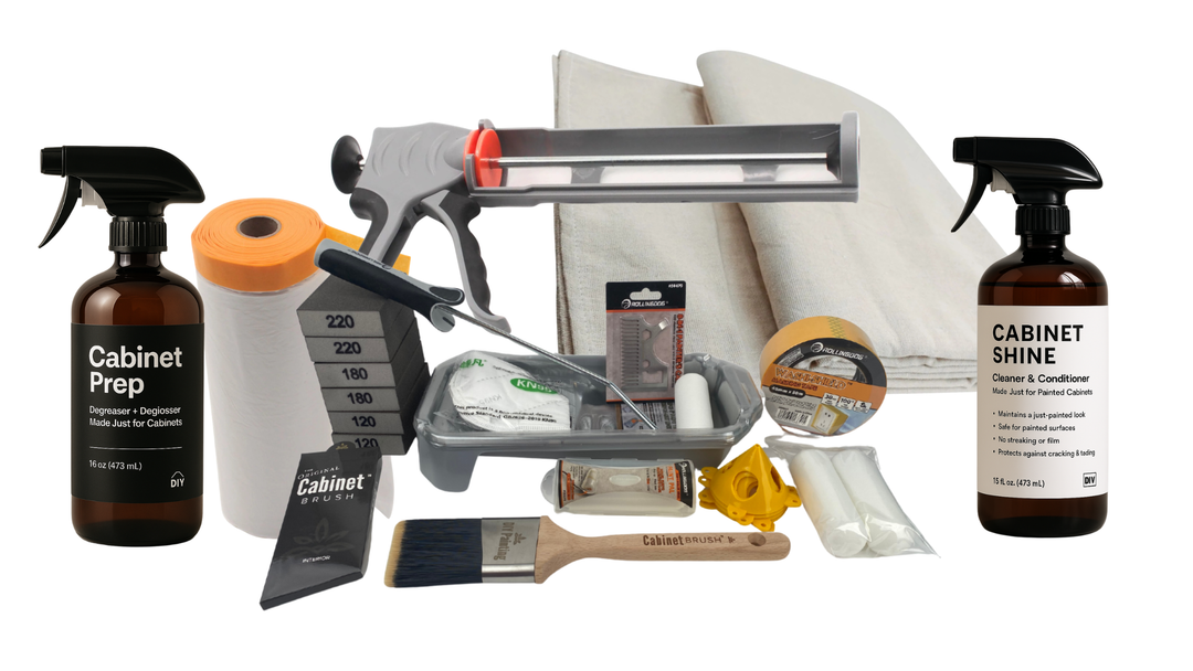 - Prep first: Clean/degloss with Cabinet Prep, then sand and dust control. Prep is 80% of the finish.