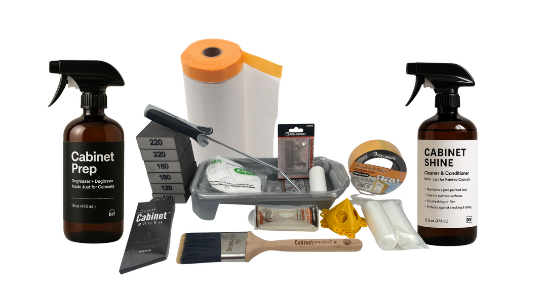 - Prep first: Clean/degloss with Cabinet Prep, then sand and dust control. Prep is 80% of the finish.